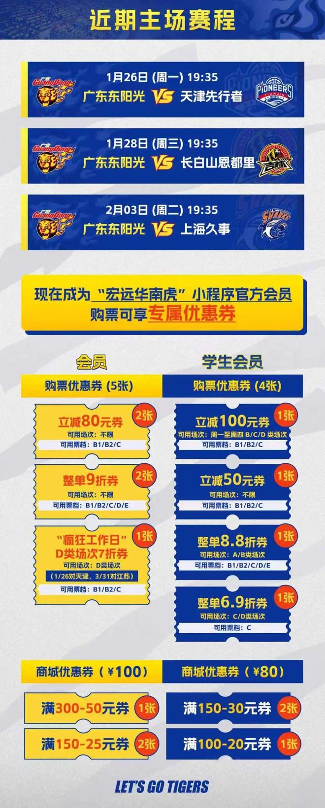 1月26日前瞻 I 华南虎继续主场征程,迎战天津