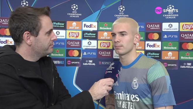 欧冠联赛阶段第7轮,皇马主场6-1战胜摩纳哥,皇马球员马斯坦托诺赛后接受了TNT体育墨西哥频道的采访。