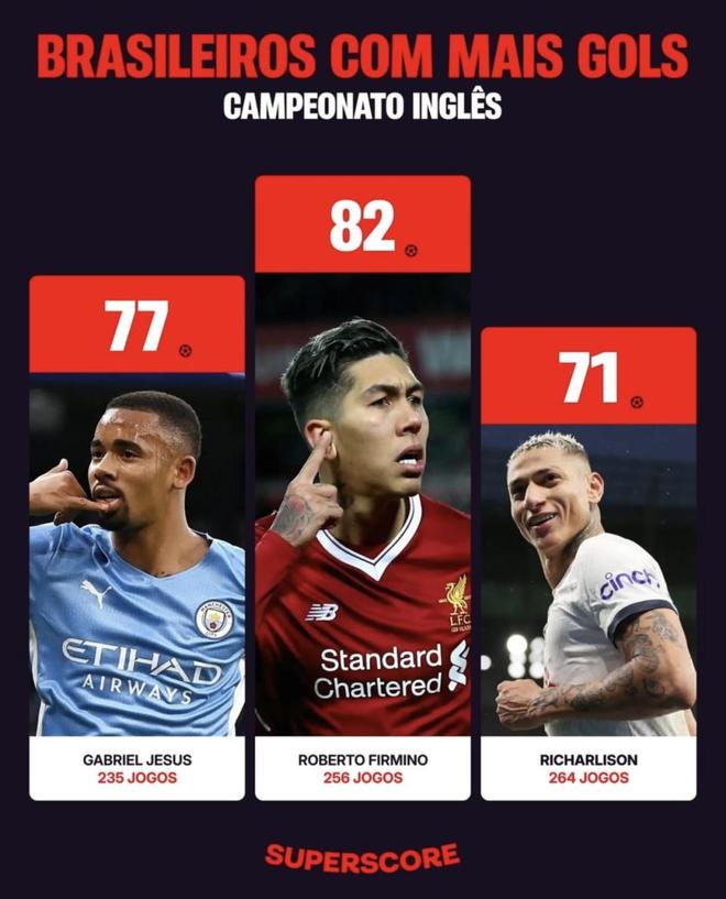 最近Superscore做了一组“五大联赛进球最多的巴西球员”榜单,英超这一栏最容易让人皱眉:菲尔米诺0.32球/场、热苏斯0.33球/场、理查利森0.27球/场,三个都在0.3上下徘徊;可换到法甲,内马尔是0.73球/场,数字直接翻了一倍多。一个是“进球榜上有名但场均不高”,一个是“场均直接冲上去”,同样写着“巴西球员”,英超这组场均为什么会这么低?(数据截至北京时间2026年1月15日)